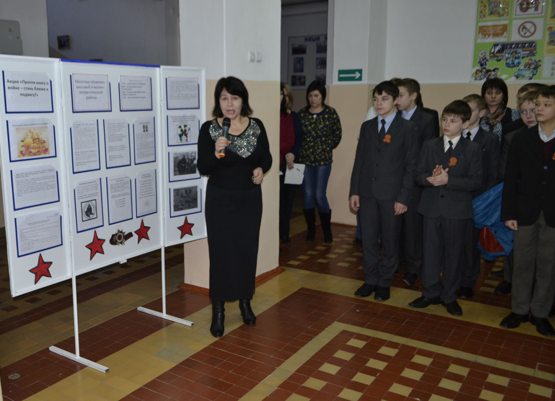 После торжественной части перед воспитанниками выступила с краткой информацией о работе школьной библиотеки в период месячника оборонно-массовой и военно-патриотической работы Ирина Леонидовна Липатникова.