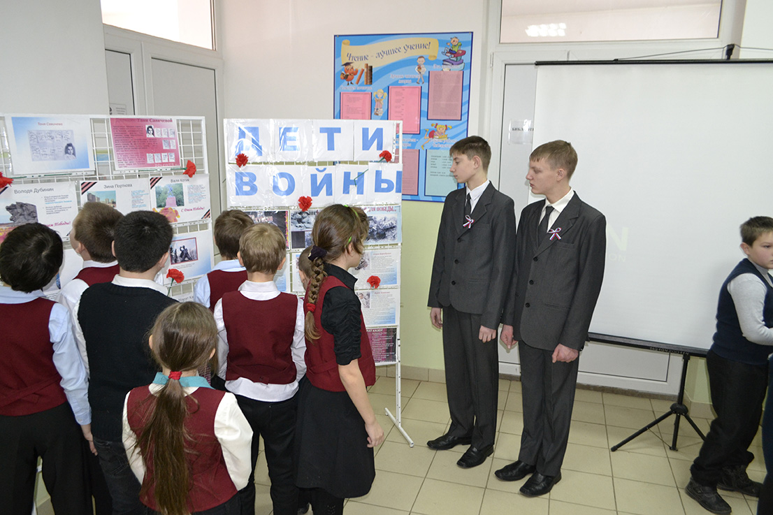 В рамках мероприятия была организованна выставка с фотографиями детей-героев Второй Мировой войны и показана познавательная презентация в соответствии с представленным материалом. Ведущие патриотического урока старший воспитатель Наталья Сенько и учащаяся Спецшколы Лидия Тюкавкина познакомили зрителей с именами юных героев, краткой биографией и рассказали об их участии и подвиге в годы второй мировой.
