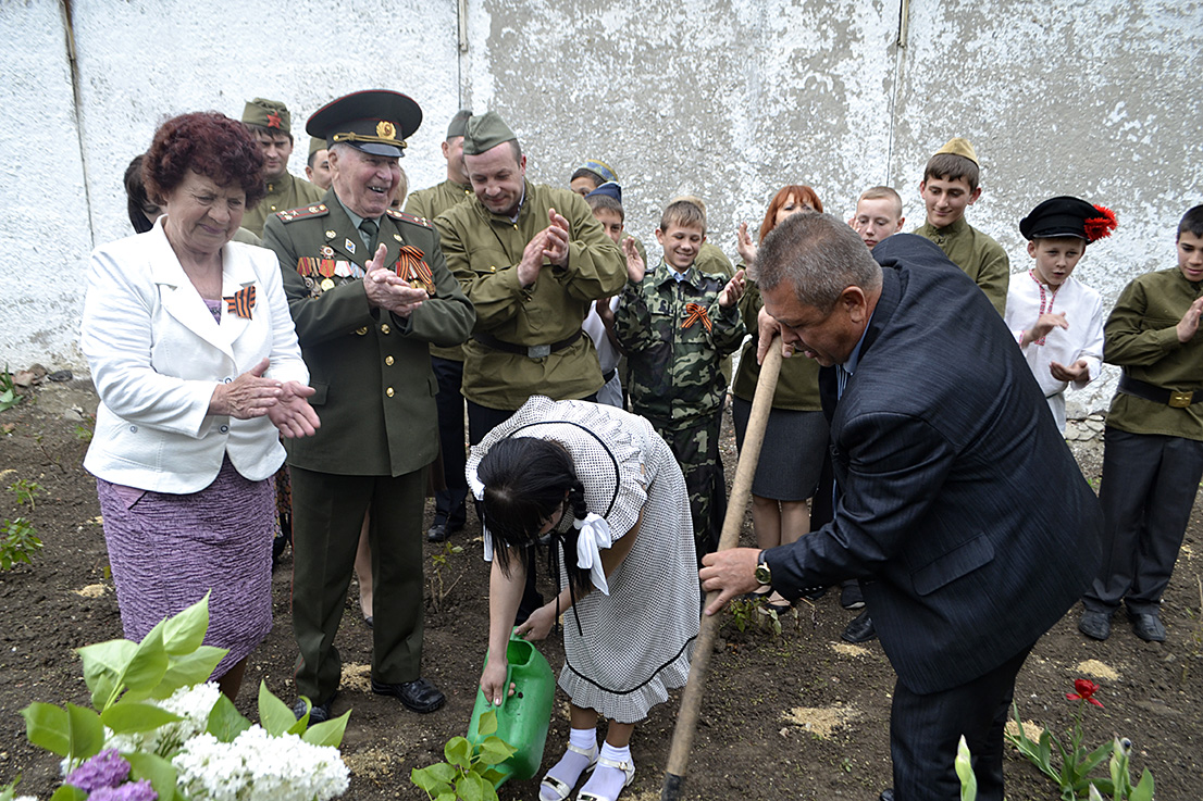 В завершение праздника воспитанники и почетный гость вместе с директором школы посадили в сиреневой Аллеи Победы школы еще один куст сирени.