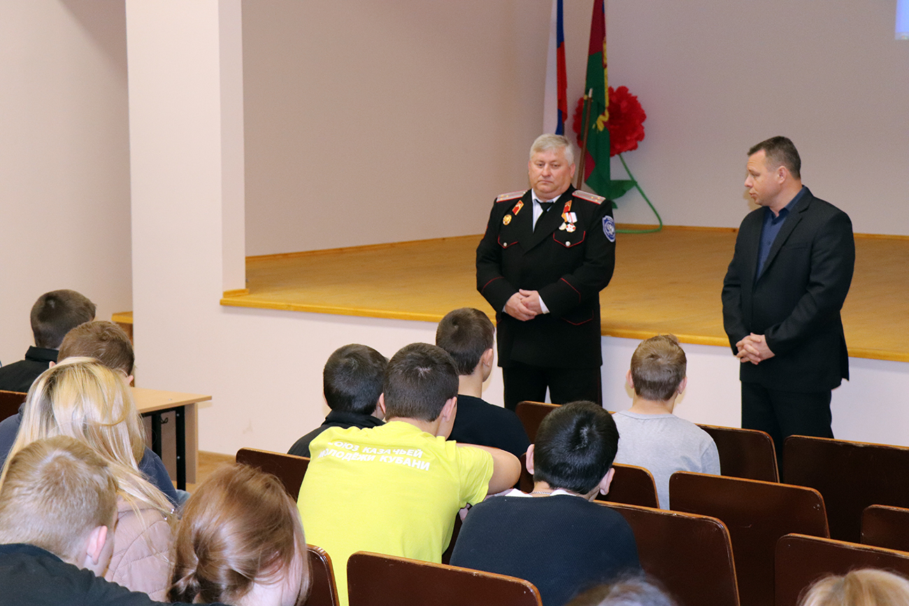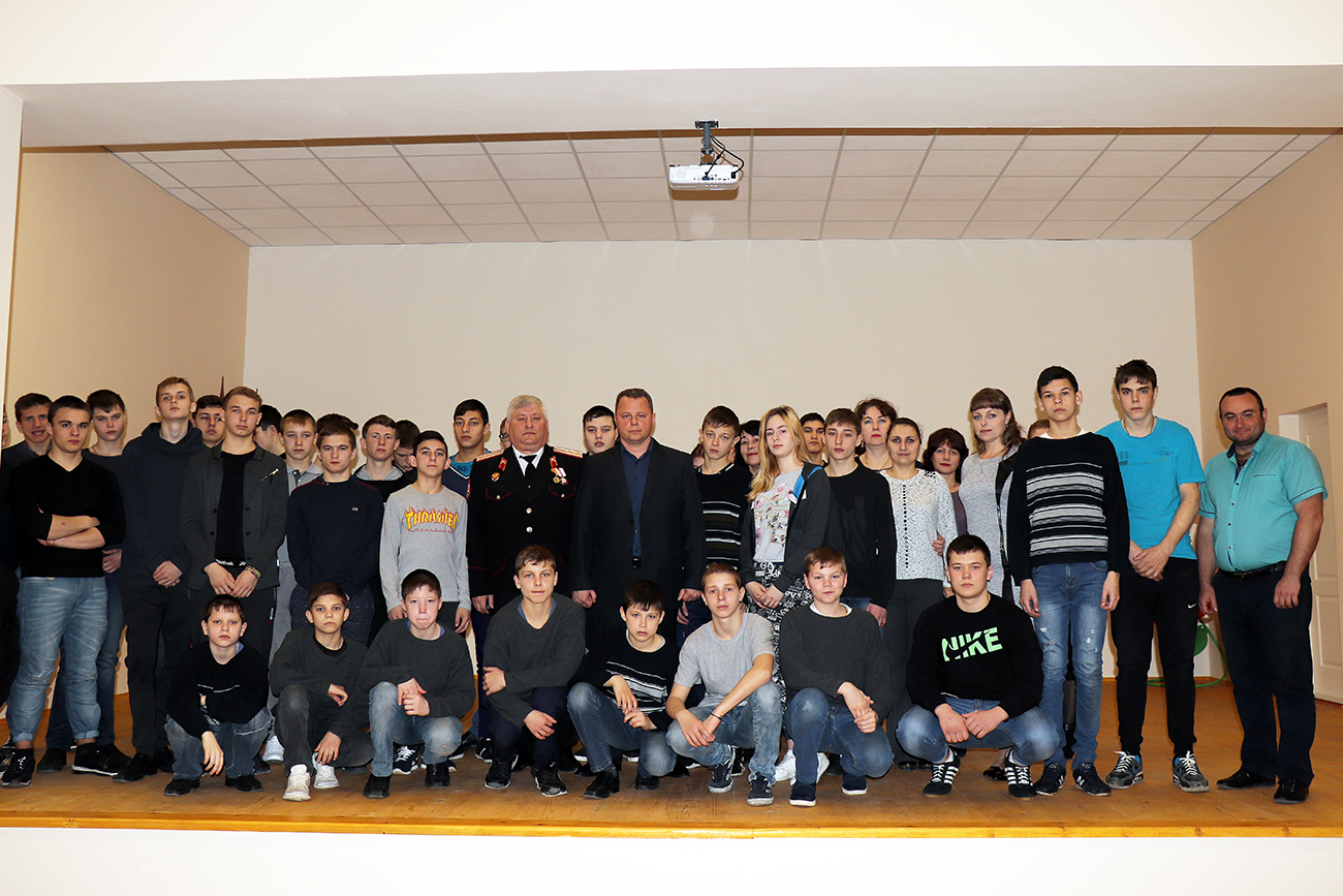 Мероприятие организовано в рамках весенних каникул и посвящено памятной дате – 5-летию воссоединения Крыма и Севастополя с Россией. В начале встречи заместитель директора по воспитательной работе Алексей Владимирович Базарный, который также принимал участие в операции, познакомил воспитанников с уважаемым гостем, поле чего был показан документальный ролик о роли казаков Брюховецкого района в проведении операции по воссоединению Крыма с Россией. В ролике были представлены архивные фотографии прошедших событий на территории Крыма в 2014 году. После чего Федор Анатольевич рассказал воспитанникам о том, что решение о вводе казачьих формирований в Крым принималось без предварительной подготовки и задача была дана от нашего района сформировать группу в течении 3-часов и отправиться к месту назначения. В целом в Крыму задачи казачьих подразделений заключались в охране границ, и в поддержании общественного порядка совместно с правоохранительными органами и местными отрядами самообороны. Кроме того Федор Анатольевич отметил, что отношения с населением у казаков были хорошие, конфликтных ситуаций не отмечалось и многие даже помогали участникам операции. В целом наши казаки продемонстрировали значительную мобилизационную готовность, высокий уровень общей дисциплины и способность к автономности в действиях и выполнению широкого спектра боевых задач. В завершение встречи с воспитанниками состоялась беседа, многие ребята проявили интерес к теме и спрашивали о событиях 2014 года.