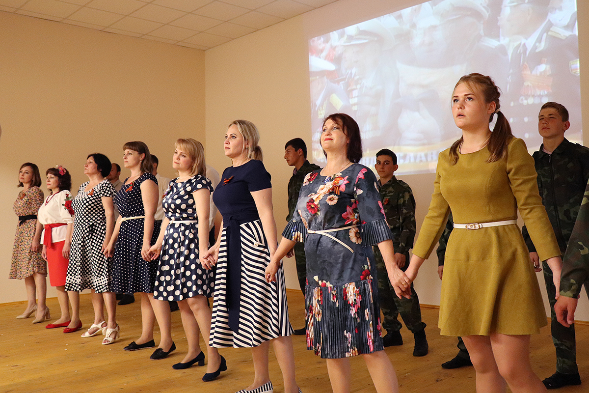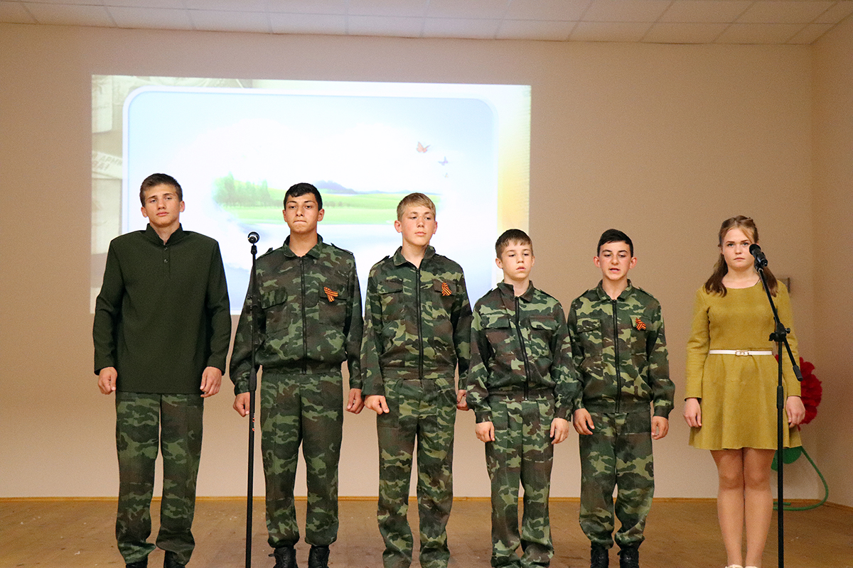 Для этой памятной встречи учителя Нина Зиненко и Ирина Кулибаба подготовили интересный и насыщенный урок мужества, в котором приняли участие учащиеся Игорь Гороховцев, Сергей Ковалев, Александр Кундус, Ксения Лукьянченко и многие другие. В рамках мероприятия зрители смогли погрузится в страшные воспоминания времен Великой Отечественной войны. Воспитанникам напомнили, какой ценой была завоевана победа, как много осталось скорбящих матерей, отцов, вдов и сирот после той страшной войны 1941-1945 годов. И несмотря ни на что Советский Союз одержал Победу. Завершением урока мужества стало общешкольное исполнение песни «День Победы».