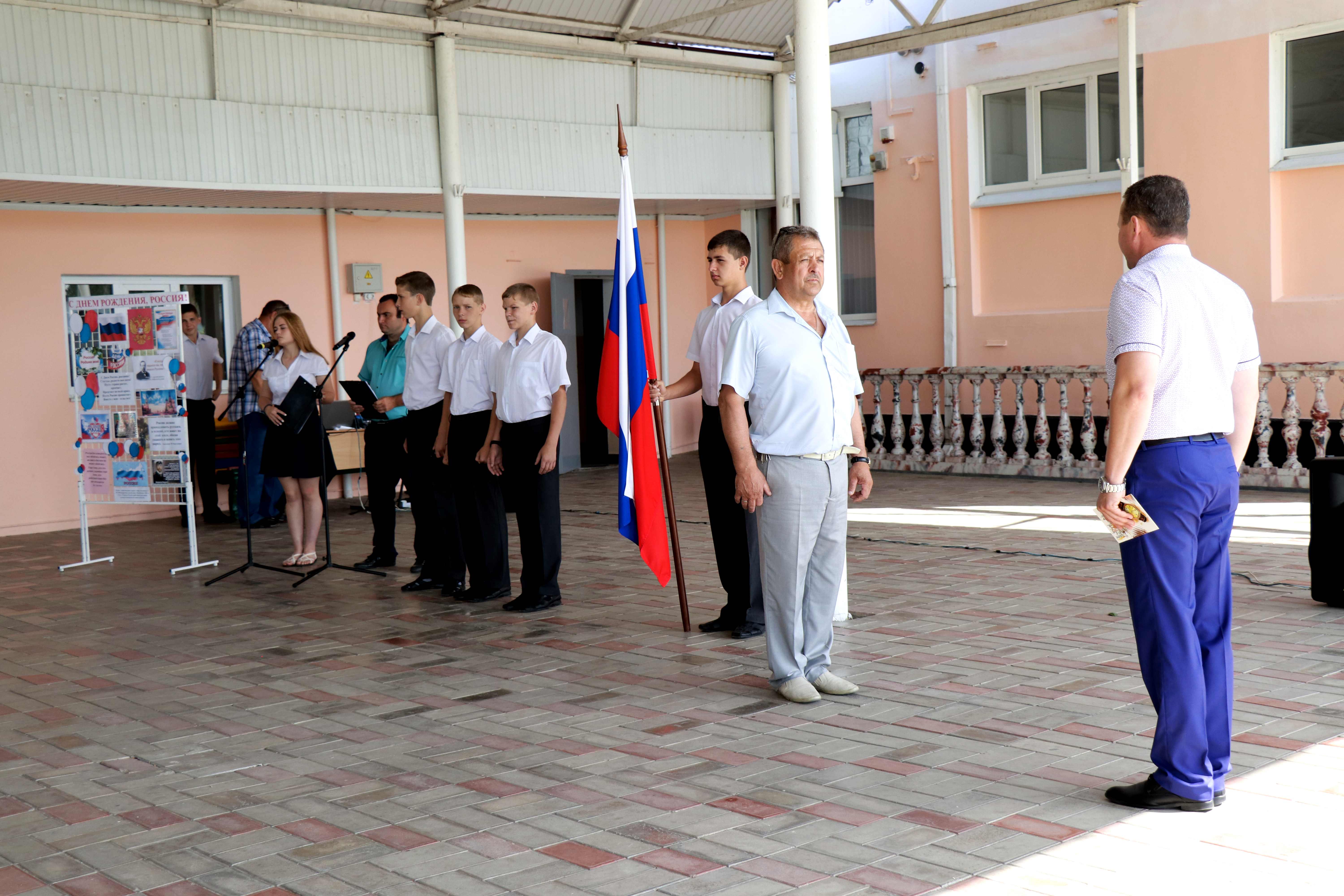 12 июня на плацу школы прошла торжественная линейка, посвященная Дню России «Сильная наша Россия». Открыл патриотическое мероприятие, учащийся Вениамин Барбой стихотворением «От Балтийска до сопок курильских».