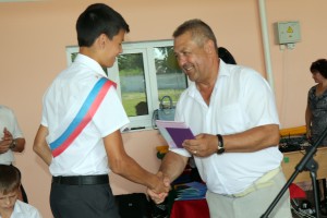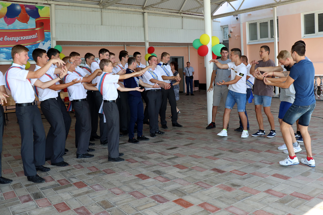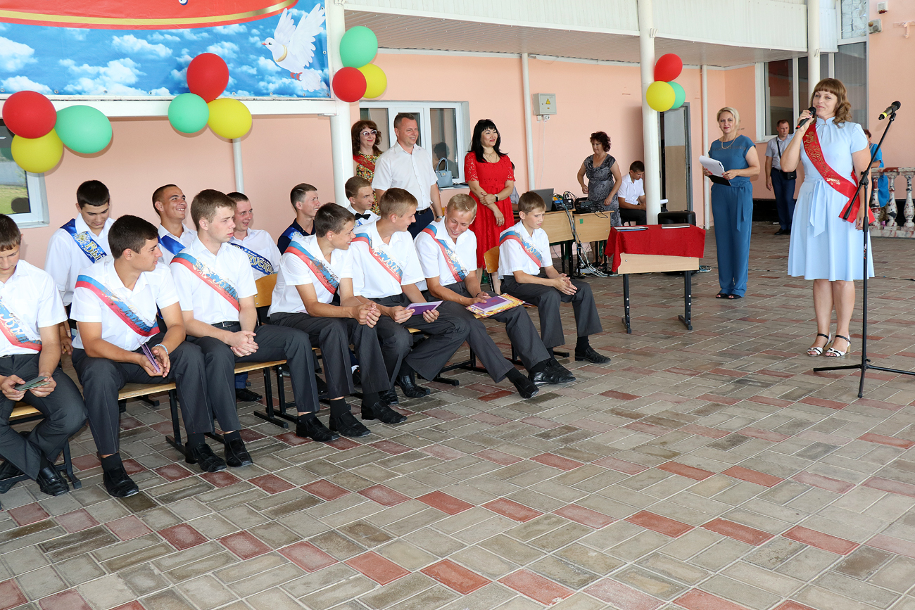 В на чале торжественного мероприятия с приветственным словом к выпускникам обратился директор школы Н.А. Лысенков. Также с поздравлениями и наилучшими пожеланиями к воспитанникам обратились почетные гости праздника начальник отдела по делам несовершеннолетних и защите их прав при администрации Брюховецкого района Е.Н. Северина и атаман Брюховецкого районного казачьего общества И. Н. Сурмач. После чего учащимся 9-х и 11-х классов были вручены аттестаты об окончании неполного среднего и среднего общего образования. После торжественного вручения аттестатов к выпускникам со словами поздравления обратились классные руководители и родители. Затем ответное слово «держали» выпускники. Они читали стихотворения, пели частушки и обратились со словами благодарности к своим учителям, воспитателям, родителям и ко всем тем, кто на протяжении нескольких лет были с ними рядом.