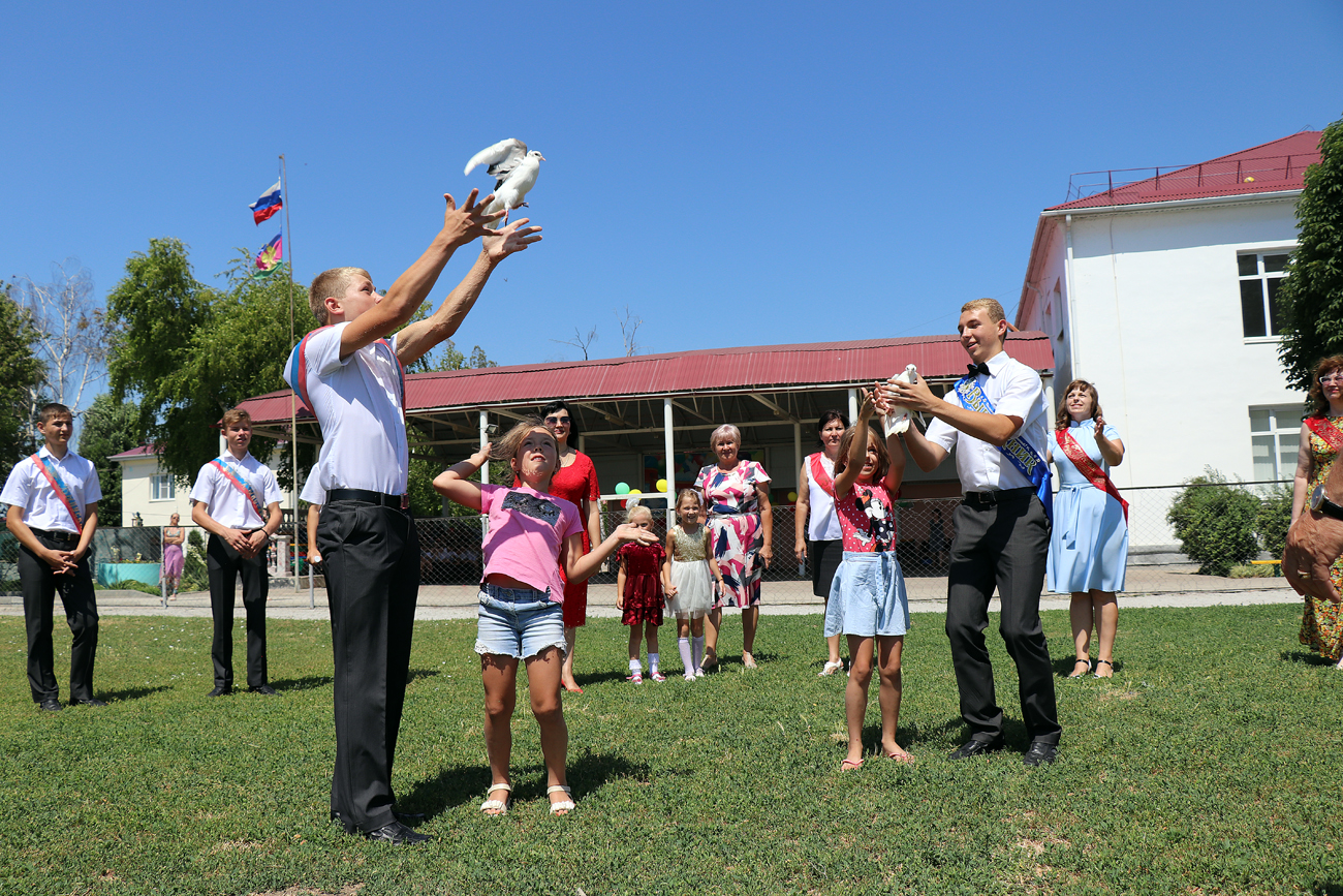 Во время торжественной линейки для виновников торжества и всех гостей звучали песни в исполнении воспитанников школы Кирилла Возмителенко, Вениамина Барбоя и Дарьи Куницыной, а участники школьного музыкально-театрального кружка показали смешную постанову «Сын получил двойку». После окончания торжественной части выпускники Сергей Ковалев и Игорь Гороховцев выпустили в небо белых голубей вместе заветными мечтами всех выпускников 2019 года.