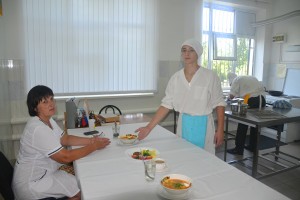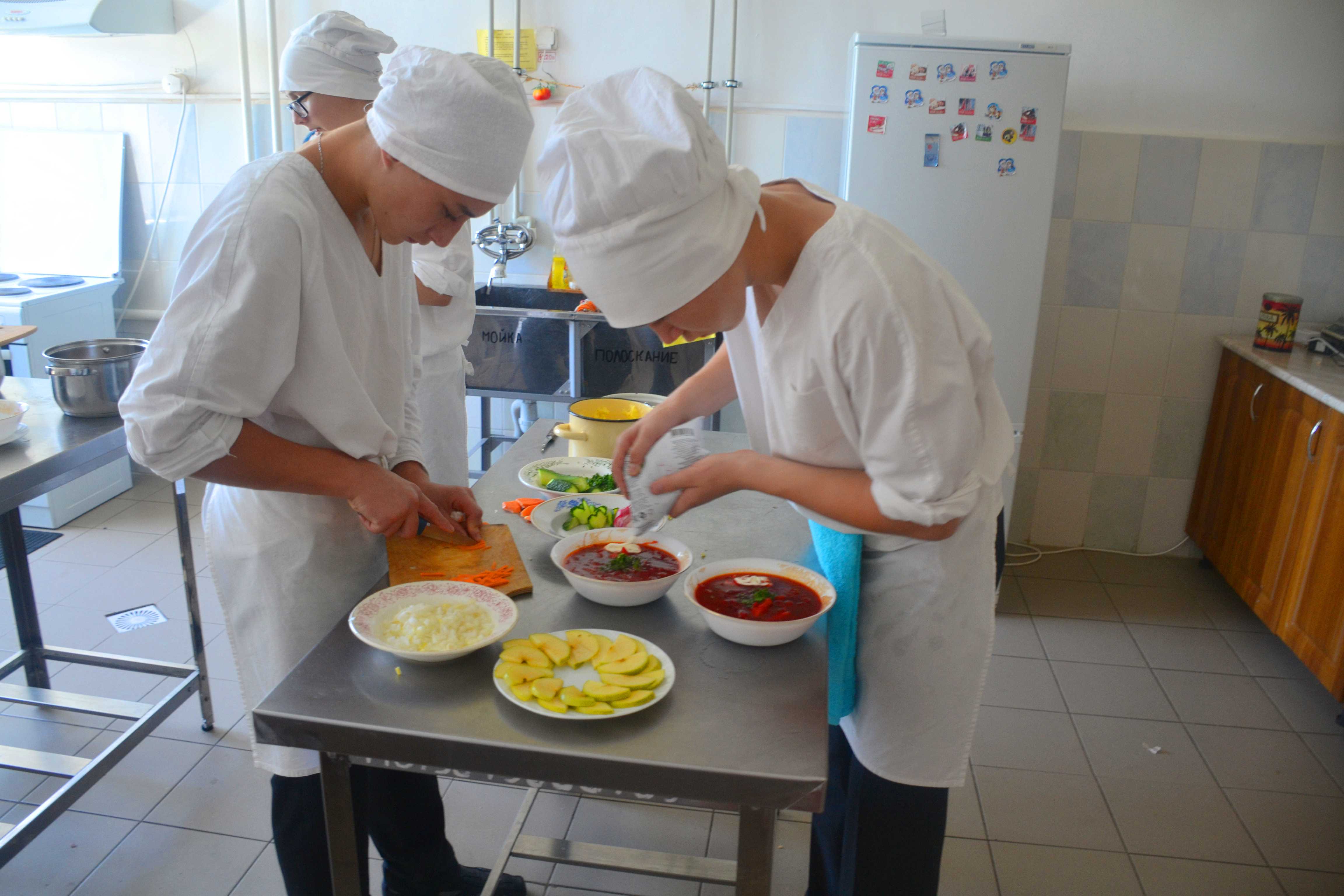 На оценку комиссии были представлены: супы «Солянка», «Харчо», «Борщ». На второе блюдо ребятами были приготовлены пюре с рыбными биточками, кулебяка, плов с курицей, картошка фри с зразами, бефстроганов в сметанном соусе. Из напитков: чай, компот из яблок, кофейный напиток.