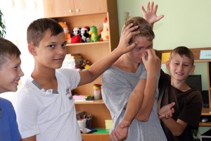 Для работы учащиеся школы были разделены по двум аудиториям в разных возрастных категориях. В комнате психологической разгрузки Анна Алексеевна Карпенко провела с младшей группой тренинги «Пересадки», «Ярлыки», «Слон, жираф и крокодил» и другие.
