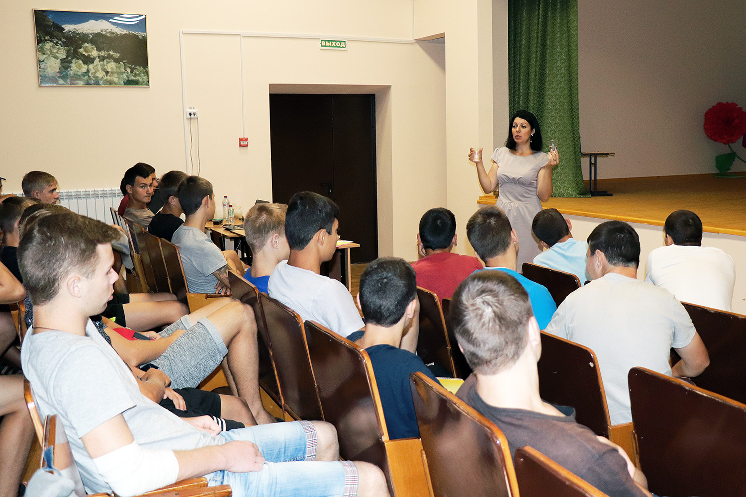 В актовом зале Татьяна Ивановна Савченко провела для воспитанников 14-17 лет факультативное занятие на тему профилактики вредных зависимостей. После познавательной лекции учащиеся посмотрели небольшое, но очень содержательное видео-интервью «Секреты успеха» с успешным, образованным и патриотичным человеком Дмитрием Чугуновым, в котором он поделится простыми и эффективными рецептами достижения высоких результатов в жизни.