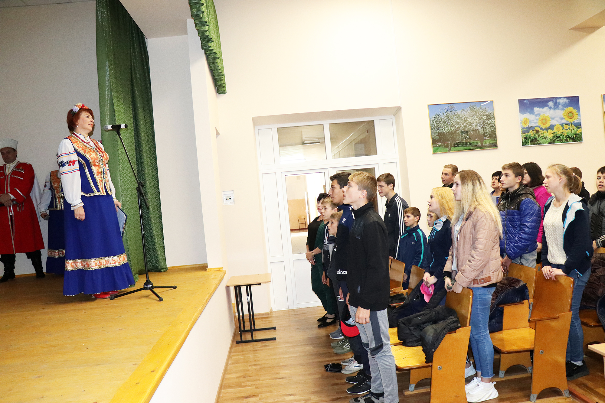 10 октября в рамках совместного плана работы Спецшколы, органов и учреждений системы профилактики Брюховецкого района в актовом зале школы прошла литературно-музыкальная композиция «Кубань-жемчужина России», посвященная 82-летию Образования Кубани и 76-летию освобождения Краснодарского края от немецко-фашистских захватчиков.