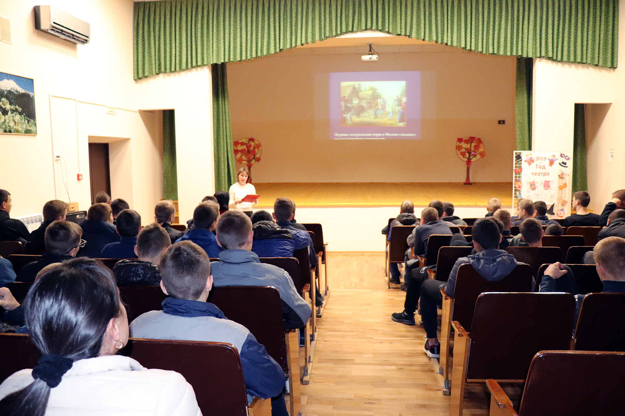 В актовом зале спецшколы специалисты библиотеки сельского дома культуры станицы Переясловской провели для обучающихся виртуальную экскурсию «Волшебный мир сцены», посвященную году театра в России.