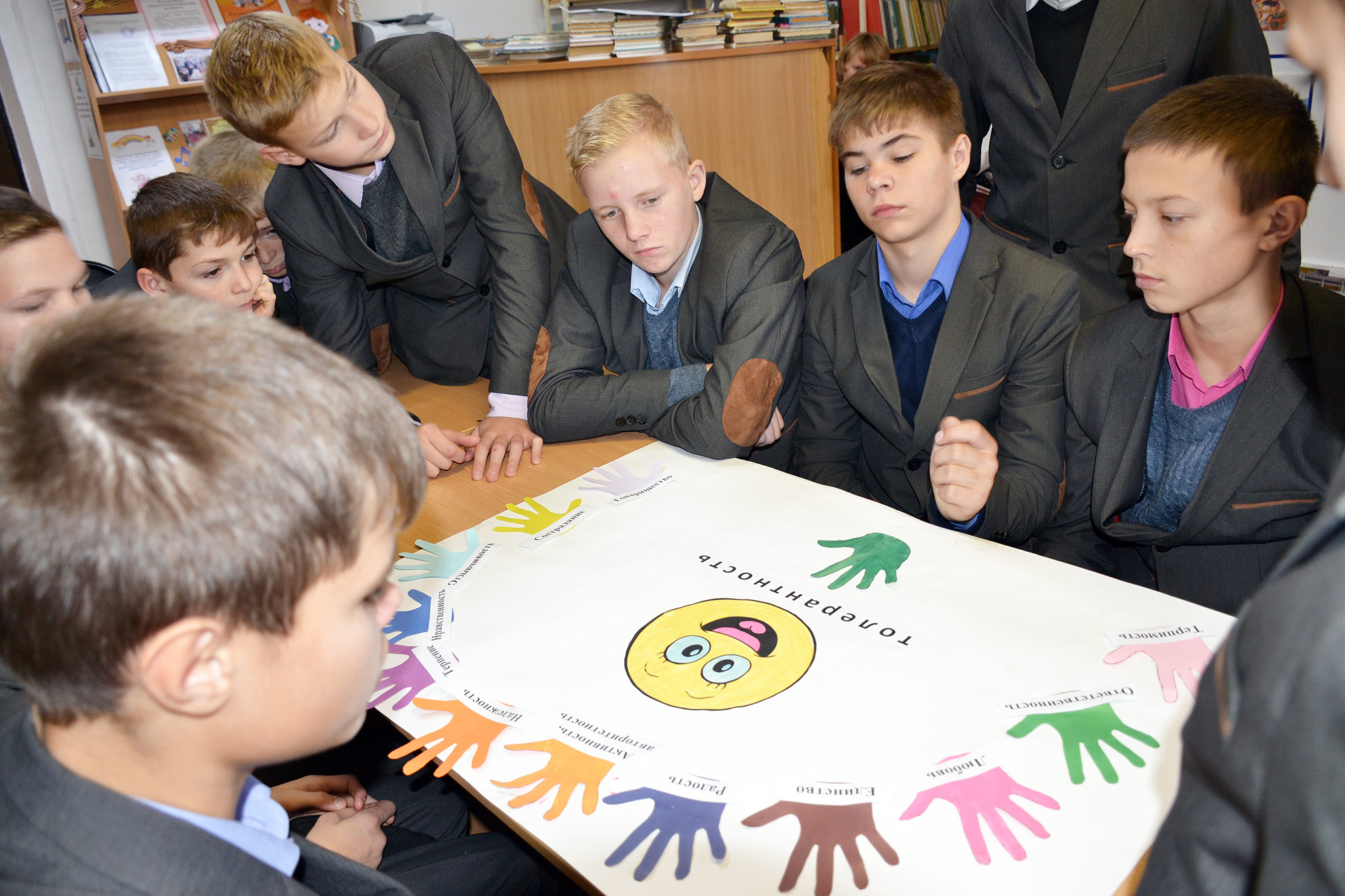 Библиотекарь Ирина Леонидовна Липатникова провела для учащихся 5-9 классов час общения «Мы живем среди людей». На библиотечном часе Ирина Леонидовна рассказала учащимся о значимости воспитания в себе такого качества как толерантность. Напомнила примеры из истории, в которых нетерпимость к другим нациям приводила к трагическим событиям, являлась следствием многих войн. Также здесь дети узнали о том, сколько наций живет на территории России и Краснодарского края. Кроме того детям напомнили, как важно уважать и ценить культуру и традиции разных народностей мира. На библиотечном мероприятии также участники собрали плакат из определений понятия «толерантность», отгадывали на вопросы познавательной викторины и складывали поговорки и пословицы.