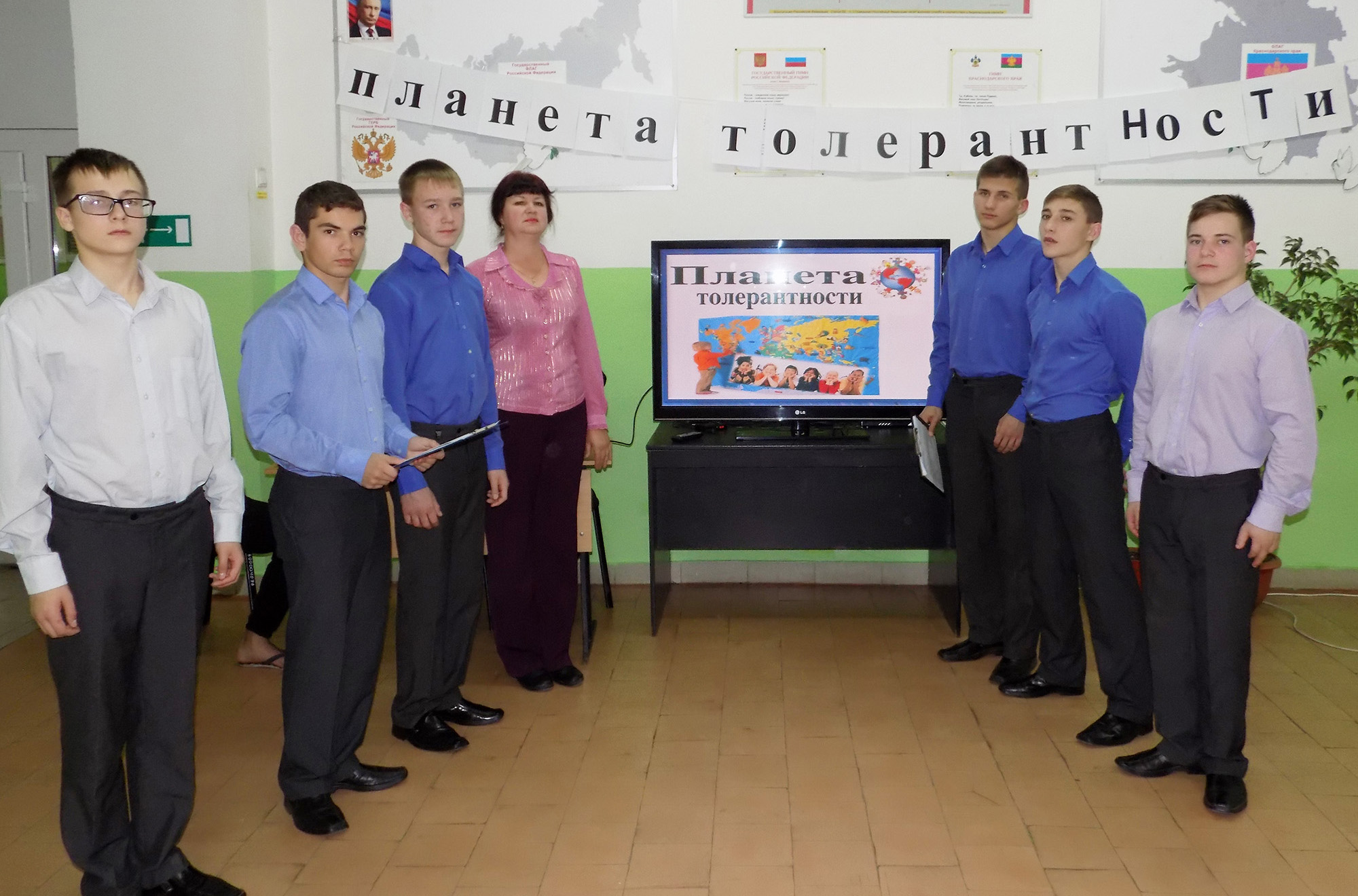 Воспитатель Светлана Юрьевна Репич организовала для воспитанников общешкольный познавательный час «Планета толерантности». В мероприятии приняли активное участие учащиеся 9 «Б» класса: Владислав Моренко, Георгий Параконный, Аким Перепелица, Александр Баташов, Григорий Муратов и Александр Коврюков. На информационном часе детей познакомили с понятием «толерантность», дали представление о возникновении данного понятия. В ходе мероприятия звучали стихотворения, демонстрировались социальные видеоролики о толерантности «Мы разные, мы равные», «Толерантность – это…», «Давайте дружить».