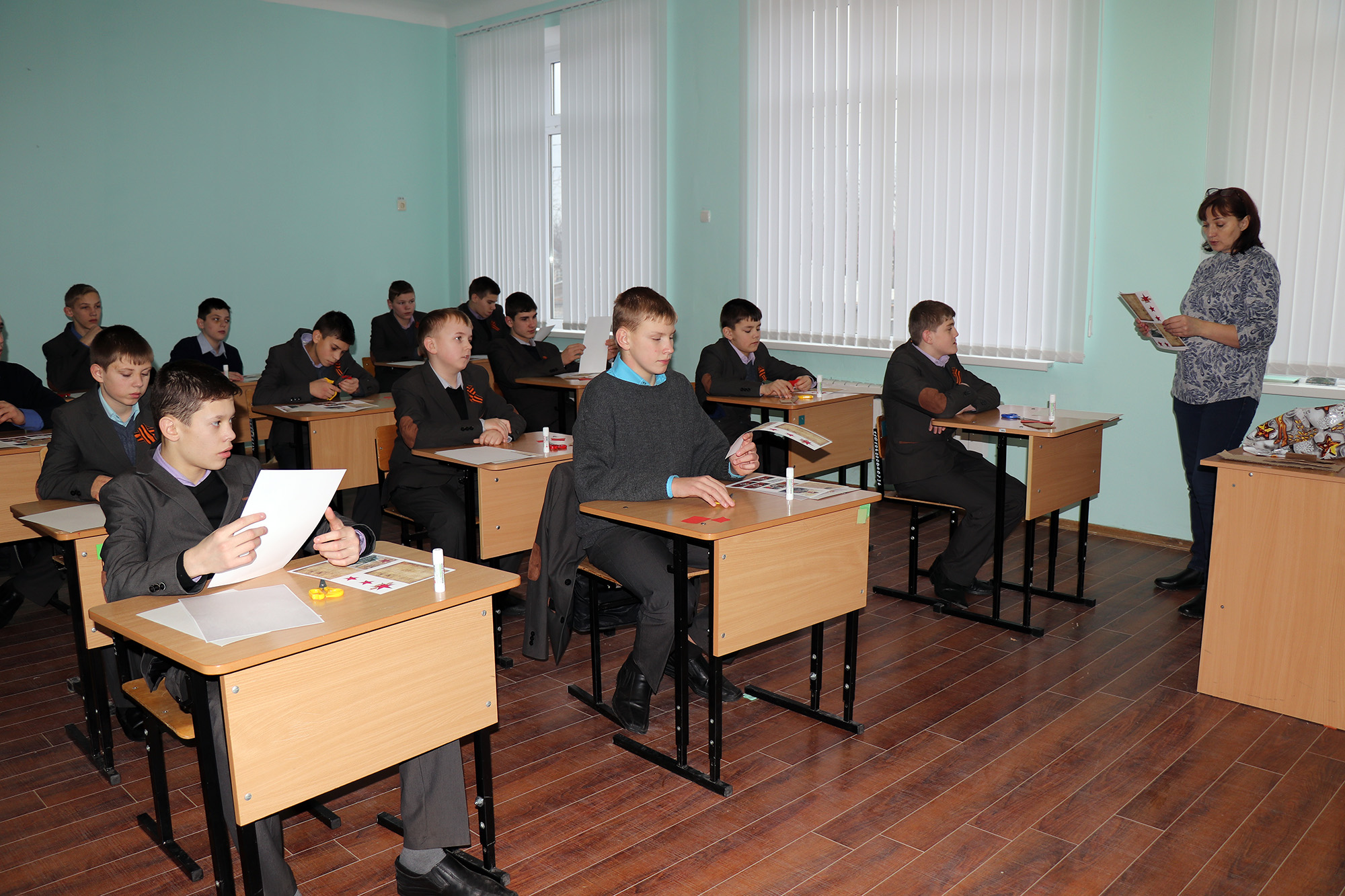 Сегодня, 29 января в спецшколе прошел мастер-класс по созданию поздравительной открытки Защитникам Отечества. Педагоги дополнительного образования ЦДОД «Радуга» Ольга Васильевна Коновалова и Елена Михайловна Рыбалка подготовили для ребят экземпляр красивой 3D-открытки в технике скрапбукинг, которую предстояло создать участникам занятия.