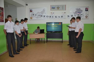 В мероприятии приняли участие обучающиеся 9-10 классов, ведущими выступили Владислав Моренко и Александр Фоменко. Ребята рассказали сверстникам о ходе Куликовской битвы, которая состоялась между русским войском и частью войска Золотой Орды. Дети познакомились с главными героями победоносного сражения и основными этапами битвы. Для воспитательского часа была подготовлена презентация и исторические видеоролики. Также с патриотическими стихотворениями выступили учащиеся Александр Рогожников, Артем Кирсанов, Артем Кузьменко и Александр Панин.