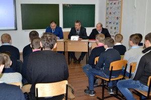 31 декабря в Спецшколе состоялась встреча с помощником прокурора МО Брюховецкий район Георгием Ивановичем Тамбуловым. Встреча была посвящена международному судебному процессу над бывшими руководителями гитлеровской Германии, который проходил 70 лет назад с 20 ноября 1945 года по 1 октября 1946 года в Нюрнберге (Германия). Во время встречи воспитанникам были разъяснены историческое значение Нюрнбергского процесса, цена завоевания Победы в Великой Отечественной войне, отмечен героизм и стойкость советских людей в борьбе с фашистским нацизмом.
