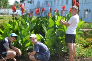 На сегодняшний день ведется активная работа по наведению порядка на школьной территории, уборке листьев и прополка травы, обрезка и уход за розами. Также воспитанники ежедневно поливают цветы и кустарники учреждения, которые они посадили сами.