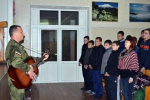 Общение проходило в дружеской обстановке. Сначала Алексей Владимирович рассказал ребятам о службе в вооруженных силах России, затем об участии в боевых действиях и о боевых друзьях, а в заключении о своей работе. В ходе встречи исполнил несколько песен…… С большим интересом ребята слушали гостя, задавали интересующие их вопросы, на которые атаман с удовольствием отвечал.
