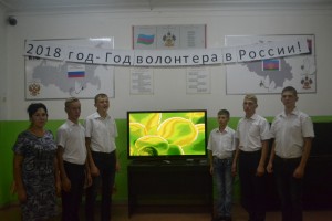 16 августа в фойе спального корпуса прошло общешкольное мероприятие, познавательный час «2018 год – год волонтера в России», которое провели воспитатель И.В. Хорикова совместно с обучающимися школы.
