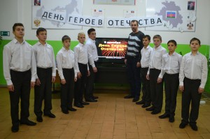 7 декабря в фойе спального корпуса состоялся общешкольный исторический час «Герои Отечества», который подготовил воспитатель В.А. Петин с целью воспитания патриотизма и гражданственности, чувства гордости и уважения к историческому прошлому Родины.