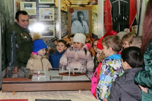 В рамках краевого месячника с этого года в выставочном зале спецшколы будут проводится выставки для всех желающих школ Брюховецкого района. Первыми наш музей посетили учащиеся 1 «А» класса средней школы № 7 станицы Переясловской. В рамках встречи руководитель школьного отделения поисково-туристского казачьего клуба «Забытый полк» Максим Сергеевич Ретюхин подробно рассказал детям о экспонатах, представленных в зале и о полковнике, прославившемся рейдом через всю Персию вдоль турецкой границы до Месопотамии в 19016 году Василии Даниловиче Гамалие. Ребятам очень понравилась экскурсия, они также с большим удовольствием познакомились с творческими работами наших воспитанников, расположенными в соседнем зале. В завершение встречи было сделано общее фото на память.