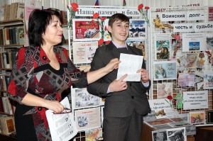 В рамках урока библиотекарь Ирина Липатникова рассказала обучающимся о событиях войны в Афганистане, напомнила имена героев, воинов-интернационалистов, проявивших мужество и храбрость в Афганской войне. Для мероприятия был оформлен тематический стенд с портретами героев войны, солдатскими письмами и тематическими иллюстрациями. Здесь же учащиеся 8-х классов зачитывали отрывки из писем ребят, которые погибли на суровой афганской земле.